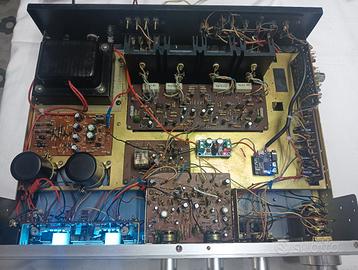 Vendo bellissimo amplificatore anni 70, tutto in metallo bello pesante, introvabile perfetto, con qualche micro graffio d'usura, ma ha un bel suono corposo, limpido e potente fino a 50 Watt. Consumo energetico 120Watt, 4 vie d'uscita, microfono con il suo controllo del volume, cuffie, per alti e bassi. Vu Meter blu ghiaccio, inserimento all'interno del modulo bluetooth. A mio avviso fatto bene con schede separate sempre riparabile. Teleton, per chi non lo sapesse, era un marchio inglese(Londra precisamente) ha operato poco, poi nel corso degli anni, il 50%. dell'azienda è stata acquisita dalla Mitsubishi e la General Corporation, e commercializzata con altri nomi.