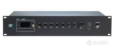 Ampli/mixer con lettore multimediale integrato, connettività bluetooth, alimentazione phantom, radio FM + DAB e telecomando incluso.