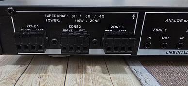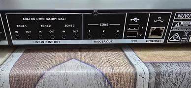 Vendo per cessata attività: Perfettamente funzionante Amplificatore Audio Muti-zona Il Nuvo NV-P4300 (spesso indicato come Nuvo P4300) è un player audio professionale multi-zona della serie "Professional Series", progettato per la diffusione sonora ad alta fedeltà in ambienti residenziali o commerciali. Ecco i punti chiave che definiscono questo dispositivo: Sistema Multi-zona (3 zone): È un'unità singola in grado di gestire e riprodurre musica in tre diverse zone (stanze) simultaneamente. Amplificazione integrata: Ogni zona è dotata di un amplificatore in classe D in grado di fornire 110 watt di potenza. Sorgenti Musicali: Permette di ascoltare musica da servizi di streaming famosi (come Spotify, Deezer, TuneIn, Napster), librerie musicali in rete (computer/NAS) o dispositivi portatili collegati via USB. Interfaccia Touchscreen: Sul pannello frontale è presente un touchscreen retroilluminato che consente di controllare lo stato del sistema, visualizzare i nomi delle zone e configurare il dispositivo. Installazione: Progettato per montaggio su rack, è ideale per installazioni centralizzate professionali A/V. Controllo: Si gestisce tramite l'app "Nuvo Player" (per smartphone e tablet Android/iOS) o tramite la tastiera a parete P30. Connettività: Dispone di ingressi linea analogici e digitali (TOSLINK). Non possiedo più scatola originale .