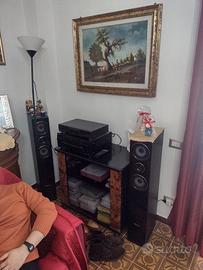 Amplificatore multicanale TEAC perfettamente funzionante da come si vede in foto. In stereo da fino a 150w a canale in multicanale da 100w a canale. Due cose importanti non ha telecomando, perso durante trasloco. E secondo a causa dei miei nipoti che andavano a toccare la manopola del volume ho fatto fare una modifica al potenziamento del volume, si alza solo in presenza di Pressione. Voi pressate e girate contemporaneamente e si alza il volume. Ma ha qualcosa che altri amplificatori non hanno e cioè il tunnel di raffreddamento per le alte potenze, quando gli altri vanno in blocco o si bruciano, questo continua a funzionare indisturbato per ore a livelli di potenza considerevoli. Le casse sono già state vendute. L'offerta vale solo per l'amplificatore non per il lettore CD. Auguri.