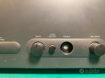 Amplificatore integrato Nad c350, 60watt per canale dall'ottima reputazione. Comprato usato molti anni fa e messo in pensione da un bel po'. Per motivi di spazio è giunto il tempo di darlo via. Purtroppo, nell'ultimo trasloco si è rotta la manopola del controllo delle alte frequenze (treble), come da foto. Il comando è comunque funzionante, ma si dovrebbe saldare il pezzo spezzato, che viene fornito. Ho collegato l'ingresso cd dell'amplificatore e funziona ancora. Trattandosi di una vendita tra privati, non fornisco garanzia di funzionamento e l'amplificatore viene venduto come danneggiato. Compreso il telecomando. Il prezzo tiene conto del difetto. Preferibile la consegna a mano su Milano
