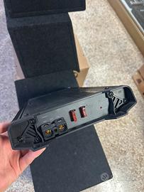 Amplificatore 4 canali Kicker usato in buone condizioni, possibilità di spedire a carico dell’acquirente, per altre info contattatemi. Disponibile tanto materiale sia nuovo che usato. Product info: 4-channel car amplifier 120 watts RMS x 4 at 4 ohms (170 watts RMS x 4 at 2 ohms) 325 watts RMS x 2 in bridged mode (4-ohm stable in bridged mode) variable high- and low-pass filters (50-200 Hz, 12 dB per octave) variable bass boost (0-18 dB at 40 Hz) top-mounted controls CEA-2006 compliant speaker- and preamp-level inputs fuse rating: 40A x 2 4-gauge power and ground leads and an 80-amp fuse recommended — wiring and hardware not included with amplifier