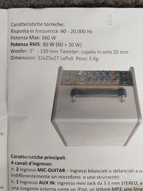 amplificatore per chitarra acustica (blootoohh,USB,jack 3,5 mm) con cavo , alimentatore, istruzioni,usata un paio di volte ma in perfette condizioni solo un segno nel pannello posteriore.