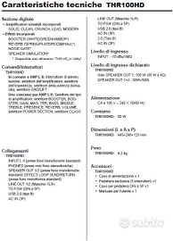 Vendo come nuovo amplificatore per chitarra Yamaha THR100HD, caratteristiche principali: