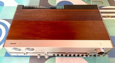 Se stai cercando un amplificatore vintage questo è quello che fa per te! E’ conosciuto dagli appassionati del settore anche come “fish-eye” per via dei caratteristici vu-meter tondi caratteristici di queste serie Philips inizio anni ‘70 . Con la sua alta polarizzazione lavora in classe A per i primi watt con una distorsione bassissima a moderati livelli di volume, gli appassionati descrivono il suono di questo amplificatore come estremamente morbido, caldo e naturale, con una limpidezza che ricorda talvolta le valvole, ed anche se accreditato di solo 30watt per canale su 4 ohm, garantisce una ottima riproduzione in ambito domestico. E’ stato revisionato , controllato e tarato, sostituiti alcuni condensatori e transistor fuori specifica od al limite di tolleranza per garantire ancora anni di buona musica. In buone condizioni generali ed estetiche, é stato collaudato ed ascoltato lungamente dopo la revisione, ma essendo comunque un oggetto usato come tale dovrà essere esclusa ogni forma di garanzia post vendita. Vale dunque la regola visto e piaciuto. Va detto per correttezza nei confronti dell’ acquirente. Sta quindi attendendo un nuovo proprietario che voglia godere delle sue grazie sonore. Riassumendo infine un ottimo vintage, per un normale uso domestico, perché no, un bell’ oggetto di arredamento che si integra alla perfezione con lo stile moderno industrial, infine anche un’apparecchio da collezione oramai, gli ampli europei quelli di una volta, come non se fanno più. Possibile ritiro con scambio a mano o spedizione con ottimo imballo con spese a carico acquirente. Contattare prima dell’offerta.