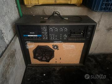 Amplificatore philips , perfettamente funzionante , con echo , entrata microfono , entrata audio , funziona sia a 220v che a 12 v …