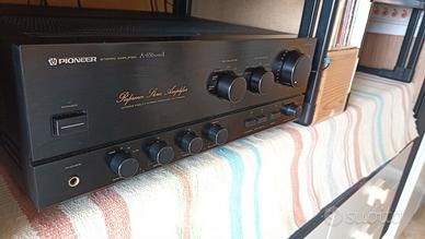 Amplificatore integrato eccellente, della prestigiosa serie REFERENCE STEREO AMPLIFIER, tra i modelli di punta di casa Pioneer anni '90. Oltre a suonar bene, è molto bello a vedersi: nero lucido, costruzione robusta e solida, capace di erogare tanta corrente grazie al trasformatore sovradimensionato ed ai grandi condensatori utilizzati.
