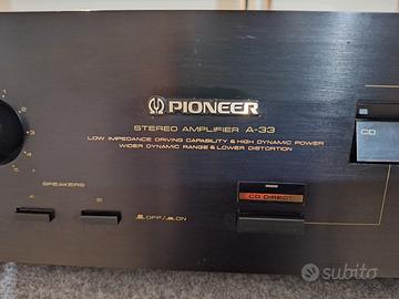 pioneer a33 anno 1985 perfettamente funzionante, 5 ingressi linea phono compreso in ottime condizioni estetiche 45 watt x canale. altre caratteristiche in foto