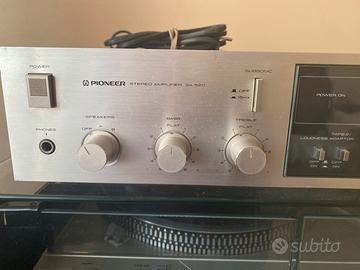 Perfetto in estetica e funzionalità, come nuovo, amplificatore Pioneer SA 520 , 32w x 2 effettivi su 8 ohm. Display in linea blu . Elegante e sobrio.