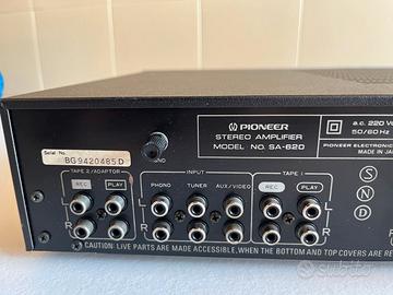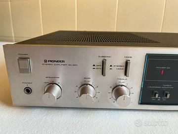 Amplificatore Pioneer SA-620 con display a luce blu-Potenza 45 watt a 8 Ohm-Peso Kg.6,7-Dimensioni:42-9-34(l,h,p)-Funzionante e in buone condizioni,si puo' provare-NON TRATTO SUL PREZZO-