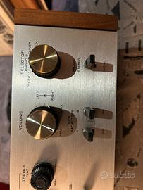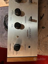 Vendo come da titolo amplificatore Pioneer perfettamente funzionante puliti potenziometri e selettori mancano coperchietti nelle tre manopole ma sono state pulite perfettamente e non vi sono segni di colla o graffi. Ci sono anche gli adattatori per cavi diffusori difficilmente reperibili.