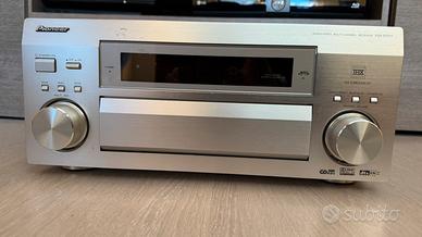 Modello vsx-d1011. Specifiche Gamma di sintonizzazione: FW, MW Potenza in uscita: 100 watt per canale in 8Ω (stereo) Uscita surround: 100W (anteriore), 100W (centro), 100W (posteriore) Risposta in frequenza: da 5Hz a 100kHz Distorsione armonica totale: 1% Sensibilità all'ingresso: 335mV (linea) Rapporto segnale/rumore: 101dB (linea) Uscita: 335mV (linea) Impedenza di carico dell'altoparlante: da 8Ω a 16Ω Ingressi digitali: coassiale, ottico Connessioni video: composito, S-video Dimensioni: 420 x 188 x 464 mm Peso: 18,2 kg Accessori: telecomando Anno: 2002