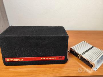 amplificatore per Subwoofer auto e relativo subwoofer . funziona benissimo tolto dall auto per cambio vettura