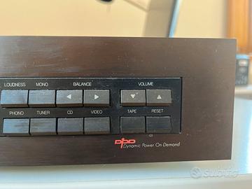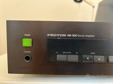 Amplificatore Proton AM300, anno 1989. 30W per canale su 8 Ohm ma con circuito DPD (in pratica un'alimentazione supplementare) per una potenza impulsiva più che doppia. Completamente funzionante ed in ottimo stato, con graffi sulla parte superiore irrilevanti per il funzionamento