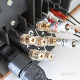 Presenti inoltre adattatore uscita speaker da connettori punto-linea a connettori a banana, adattatore alimentazione per cavi IEC C13, cavo di alimentazione originale e guida utente.