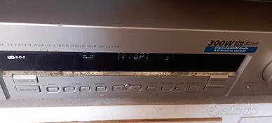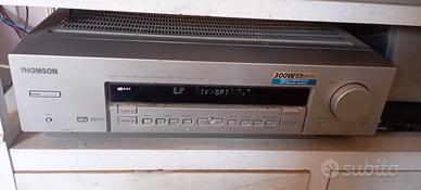 Impianto di alta qualità per la riproduzione audio in casa collegabile a qualunque sorgente, ingresso ottico e coassiale.Presenta macchie dovute all'usura del tempo, 50W a canale, no telecomando, venduto completo di subwoofer,4 satelliti e centrale.In omaggio lettore DVD Thomson perfetto anche per l'ascolto di CD.