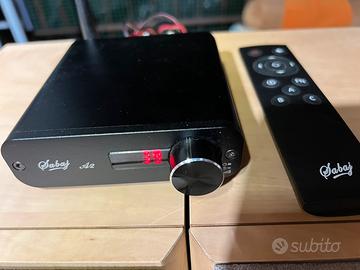 Vendo stupendo amplificatore Sabaj A2 in solendide condizioni estetiche e perfettamente funzionante. Piccolo ma con una resa sonora da invidiare. Con una potenza di 40 watt per canale in 8 ohm e 55 watt per canale in 4 ohm , capace di pilotare qualsiasi tipo di diffusore audio. Personalmente lo tengo attaccato alle casse Indiana Line Tesi 560 e il suono che sprigiona è semplicemente stupendo! Dotato di ingresso ottico che permette di collegare l’amplificatore a qualsiasi lettore cd ho alla tv per avere un suono di qualità.Inoltre ha anche l’ingresso aux rca 3.5 che permette il collegamento ad un tuner stereo, radio, lettore cd, lettore deck cassette, etc. E non per ultimo dotato di bluetooth con una portata da 10 metri, molto preciso e di facile collegamento. Dotato di alimentatore originale e telecomando. Dal telecomando si possono cambiare i vari ingressi, alzare ho abbassare il volume, tasto muto, Eq . Per le casse acceta il classico cavo spelato, le forcelle e i collegamenti a banana. Prezzo 50 euro, non trattabile! Non spedisco! Ritiro a Legnano.
