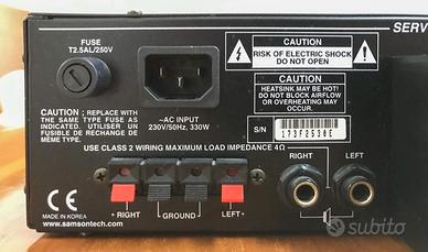 Amplificatore da studio a 2 canali, ideale per monitor near field. In buono stato, perfettamente funzionante. Senza ventole e silenziosissimo. Tenuto sempre in studio non fumatore. Attenzione: non è per nulla paragonabile agli ultimi modelli cinesi e di qualità inferiore. Questo è fabbricato in Corea. A buon intenditor... Specifiche tecniche dal sito del produttore: -Servo-controlled stereo power amp in two rack spaces -85 watts per channel into 4 ohms -Wide, linear 20 Hz to 50 kHz frequency response for superior audio performance -Relay-controlled power-on circuitry prevents speaker "thumps" -Front-panel Clip and Idle LEDs for both channels -Balanced 1/4" TRS inputs -Unbalanced RCA inputs -Circuitry protection against overheating and over-current -1/4" and push-spring terminal outputs -Independent left/right input level controls with 41 detents -Bipolar amplifier design -Convection-cooled design for quiet performance Disponibile sia per la spedizione, sia per il ritiro a mano. Provvederò a imballare con materiale protettivo attorno. Per qualsiasi informazione, non esitate a contattarmi. Per favore no perditempo. Grazie