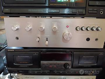 Amplificatore Integrato marca Sansui, modello AU 2200 Vintage con produzione dal 1975-76, risposta in frequenza da 30Hz a 22Khz, distorsione armonica totale 0,8%, rapporto segnale rumore 75DB in linea, separazione canali 45DB in linea, dimensioni 40 x 12 x 24 cm, peso 5 kg. Eroga dichiarato dalla casa 10 Watt x canale in 8 OMS ma al solito come nelle amplificazioni anni 70, sono valori sottostimati, perche' allora non si tendeva ad acquistare oggetti di wattaggio alto, la gente proveniva da giradischi amplificati di 6 Watt. In RSM potenza continua, siamo sui 13-15 Watt con casse di 8 OMS, con quelle da 4 OMS la potenza di uscita sale. Due coppie di casse collegabili, ingressi per Phono, Tuner(radio) AUX(Lettore CD) doppio ingresso-uscita per un lettore a cassette o altro. Visto che allora il McIntosh era inarrivabile e la Kenwood con la serie Supreme era di un altro livello, la lotta era tra Sansui e Marantz, questo e' equivalente al Marantz 1030, e il 1030 era in risposta a questo. Poi ognuno la sua scelta personale a suo gusto. La parte migliore di questo ampli e' la sezione Phono(Giradischi) ha una riproduzione del disco che trovo difficile trovare in amplificatori piu' quotati. Come da foto reali estetica pari al nuovo e acceso in perfetto funzionamento in ogni sua parte. Si spedisce.