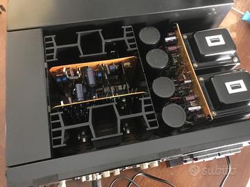 Amplificatore più che nuovo, malgrado fosse impeccabile è stato completamente aggiornato con un kit americano dedicato comprendente prodotti di alta qualità , condensatori di filtro da 15000mf (gli originali erano da 12000mf) più tutti gli altri condensatori delle varie schede, diodi, trimmer, alcune resistenze e molti transistor aggiornati più affidabili. Considerate che il solo kit senza montaggio ha un costo di oltre 200 euro, il montaggio di tutti i componenti richiede molto tempo e competenza ed ha un costo importante che giustifica abbondantemente il prezzo richiesto per questo splendido ampli. Le schede sono state pulite dalla famigerata colla e sostituiti i componenti interessati dalla stessa.Tutti i selettori e interruttori puliti e disossidati. Suono e funzionamento impeccabili. L’ampli è praticamente nuovo sia dentro che fuori ed essendo appena stato completamente revisionato potrete godere del suo suono e affidabilità per molti anni.
