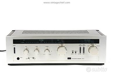 Sansui A-5è un amplificatore integrato stereo vintage del 1982, che offre25 watt per canale su 8 Ohm, con risposta in frequenza 10Hz-50kHz, distorsione armonica totale (THD) dello 0.08% e ingresso fono (MM) e linea, caratteristiche tipiche di un dispositivo Hi-Fi di fascia media dell'epoca, compreso di controlli di tono e indicatori LED, ed è famoso per la sua qualità costruttiva Sansui.