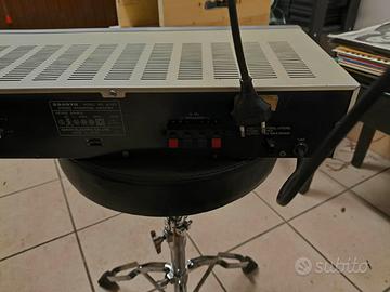 Vendo amplificatore integrato stereo SANYO SYSTEM 220 JA 220, 20 watt rms su 8 ohm, misure in cm. 42x9x23 e 5 kg., made in Japan, anno 1984, ottime condizioni, colore silver argento alluminio, qualche piccolo segno sul telaio ma in generale ribadisco ottime condizioni, TUTTO ORIGINALE, suono meraviglioso (provare per credere), perfettamente funzionante e pronto all'uso, (a richiesta altre foto e video test), qualsiasi prova anche con casse dell'acquirente, a corredo cavo alimentazione, vendo a 70 euro.