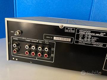 Il Kenwood KA-54 è in condizioni strepitose, difficilmete si trova in questo stato, perfetto anche tecnicamente, è un amplificatore integrato stereo "solid state" affidabile. Si tratta di un modello entry-level, apprezzato per la sua semplicità e per il tipico suono "caldo" tipico dell'estetica e della progettazione giapponese di quel periodo. Ideale per chi cerca un suono vintage pulito e una buona versatilità nelle connessioni.