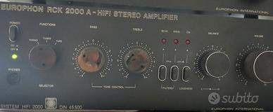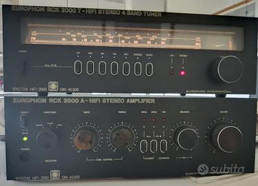 Vendo Amplificatore + Sintonizzatore EUROPHON mod. RCK2000, funzionante. Si precisa che mancano su alcune manopole dell'amplificatore, la copertura in plastica ( dalle foto si notano i residui di colla, non si tratta di ruggine). Visto e piaciuto, nello stato in cui si trova. Prezzo totale 60 euro, non trattabile. Pagamento anticipato. Prima di acquistare siete pregati di contattarmi, grazie.