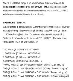 Possibilità di prova prima dell'acquisto. In foto anche specifiche tecniche dell'amplificatore.