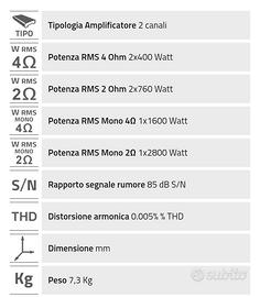 Vendo amplificatore Steg K2.04 originale (finitura grigia). Finale di Classe AB noto per la sua potenza devastante e l'alta qualità audio L'oggetto è senza un graffio, CONDIZIONI DI VENDITA: SOLO consegna a mano (non spedisco). Disponibile a qualsiasi prova prima dell'acquisto per verificare il perfetto funzionamento. Richiedo che l'acquirente si assicuri dell'efficienza dell'oggetto di persona. Per altre INFO E FOTO accetto proposte o scambi cerco scarico sh300 oppure cerchi in lega per grande punto contattatemi. 3270044717 PER RICERCA: Audison, Hertz, Ground Zero, Zapco, Mosconi, Gladen, Rockford Fosgate, Alpine, Pioneer, JL Audio, Focal, Morel, Dragster, Sp Audio, Ciare, Orion, Brax, Helix, Tuning Audio, Subwoofer, Midrange, Tweeter, Amplificatore.