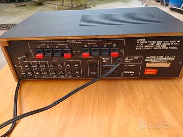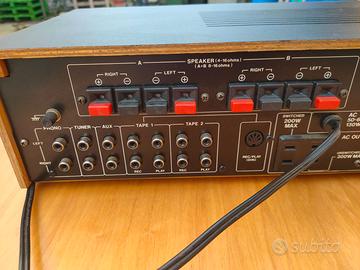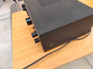 Vendo amplificatore stereo hi fi AKAI AM 2200. Made in Japan. Potenza in uscita: 20W per canale su 8Ω (stereo). Dimensioni: 380 x 125 x 263 mm. Peso: 5,5 kg. Inputs: RCA (Phono, Tuner Aux, Tape1 5 Din in/Rec/Play, Tape 2Rec/Play). Controlli: Tone Control (Bass e treble), Filter (Low e high), Mono/Stereo, Volume, Loudness on/off, Balance, Speaker A/B, Tape Monitor 1/2, Input selector (Phono, Tuner e Aux). Scocca in compensato nero, frontale tutto in alluminio anodizzato nero opaco con scritte bianche tutte perfette. Tutto originale, perfettamente funzionante.