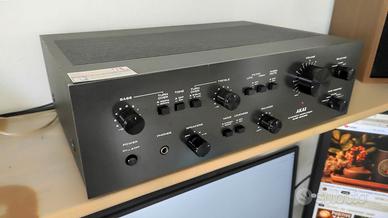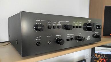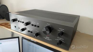 Vendo amplificatore stereo Akai AM-2400 in perfette condizioni, completamente funzionante e senza alcun difetto estetico o tecnico. È un modello davvero ben costruito, made in Japan, prodotto tra il 1977 e il 1979, conosciuto per il suo suono caldo e dettagliato, tipico degli amplificatori giapponesi dell’epoca. Eroga 40 watt per canale su 8 ohm, con una distorsione armonica totale dello 0,15% e un ottimo fattore di smorzamento pari a 60. La risposta in frequenza va da 20 Hz a 20 kHz, con un rapporto segnale/rumore superiore a 75 dB sul phono e oltre 95 dB sulla linea, mentre la separazione dei canali è superiore a 55 dB. Dispone di ingressi phono MM, tuner, aux e tape monitor, e di uscite per due coppie di casse (A e B) da 4 a 16 ohm, oltre alla classica uscita per cuffie. I controlli includono bass, treble, loudness e i filtri high/low. Misura 44 cm di larghezza, 14,1 cm di altezza e 33,1 cm di profondità, con un peso di circa 9,1 kg. Funziona a 220V 50Hz. Prezzo 120 euro.