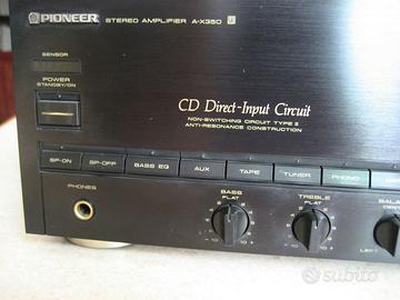 Ottimo amplificatore HiFi Pioneer A-X350 Prodotto nel 1989 perfettamente funzionante e magnificamente conservato ;( vedere foto e ancor meglio di persona ) pochissimo usato ,come del resto tutte le apparecchiatura di quegli anni poiche venivano acqistati dalla maggior parte delle persone piu per tendenza che per effettivo desiderio d'uso