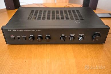 SALVE VENDO------ Per contattarmi SOLO tramite telefono 3505253959 --- Amplificatore Stereo Integrato Rotel RA-820AX – Vintage Hi-Fi Cerchi il vero suono British degli anni '80? Metto in vendita lo storico Rotel RA-820AX, un amplificatore che ha fatto la storia dell'Hi-Fi per il suo eccezionale rapporto qualità-prezzo e per la sua capacità di pilotare diffusori anche impegnativi con una naturalezza sorprendente. Questo modello è celebre per il suo design minimalista "Straight Line": pochi fronzoli, tutto è progettato per preservare la purezza del segnale audio. È l'amplificatore ideale per chi vuole approcciarsi al mondo del vinile o per chi cerca un suono caldo, dettagliato e mai affaticante. Caratteristiche Tecniche Principali: Potenza: 30 Watt per canale su 8Ω (reali e molto dinamici). Risposta in frequenza: Ampia e lineare (10Hz a 40kHz). Stadio Phono di qualità: Ingresso dedicato per giradischi (MM) eccellente, molto silenzioso e musicale. Ingressi: Phono, CD, Tuner, Video/Aux, Tape (Monitor). Design: Chassis compatto e robusto, estetica sobria ed elegante in pieno stile vintage. Condizioni dell'oggetto: Funzionamento: Perfettamente funzionante in ogni sua parte. Potenziometri puliti (nessun fruscio). Interventi: Recentemente revisionato / Tutto originale. Nota per l'acquirente: Non farti ingannare dai "soli" 30W dichiarati. La capacità di erogazione di corrente di questo Rotel lo rende molto più energico di molti amplificatori moderni con wattaggi superiori sulla carta. Specifiche principali: Potenza di uscita: 30 Watt per canale su 8 ohm Distorsione armonica totale: 0,08% Risposta in frequenza: da 10 Hz a 40 kHz Rapporto segnale/rumore: 80 dB (MM), 100 dB (Linea) Fattore di smorzamento: 180 (20-20.000 Hz, 8) Dimensioni: 444 x 86 x 303 mm (Larghezza x Altezza x Profondità) Peso: 6 kg ROTEL RA 820AX