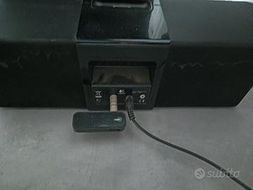 amplificatore stereo Logitech perfettamente funzionante con in dotazione chiavetta bluetooth cavo alimentazione, funzionante anche a batteria+cavo jack jack.