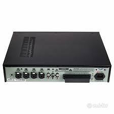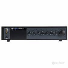 Amplificatore Potenza: 120 W Collegamento altoparlanti a 100 V o a bassa impedenza (min. 4 Ohm) 4 ingressi microfonici/di linea con alimentazione phantom a 24 V Ingresso aux, Uscita di linea, Controllo del tono di fondo Dimensioni: 420 x 88 x 262 mm, Peso: 8,9 kg