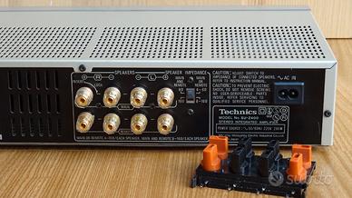 Amplificatore perfettamente funzionante. In ottime condizioni sia estetiche che elettroniche. Controllato e verificato in tutte le sue parti. Come spesso mi capita su amplificatori Technics, ho dovuto sostituire i morsetti delle casse con morsetti più professionali. Purtroppo gli originali (vedi ultima foto quelli appoggiati sul piano) con gli anni si secca la plastica e si rompono. Considerare che se calcolassi questo lavoro già supererebbe il costo dell'apparecchio. Specifiche: Potenza di uscita: 50 watt per canale su 8 ohm (stereo) Risposta in frequenza: da 10 Hz a 80 kHz Distorsione armonica totale: 0,02% Fattore di smorzamento: 40 Sensibilità di ingresso: 2,5 mV (MM), 150 mV (linea) Rapporto segnale/rumore: 75 dB (MM), 86 dB (linea) Separazione dei canali: 50 dB (linea) Uscita: 150 mV (linea) Impedenza di carico dell'altoparlante: da 4Ω a 16Ω Dimensioni: 430 x 86 x 240 mm Peso: 5,1 kg Anno di costruzione: 1984-85 Prova e consegna presso la mia abitazione