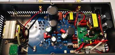 L'alimentazione è molto innovativa: è affidata ad un nuovo circuito switching, molto silenzioso e compatto, che possiede una capacità di sovraccarico elevata: l'anodica viene poi filtrata con un filtro CLC: infine l'alimentazione dei filamenti è in continua, anche della finale, che riduce il rumore "hum" ai minimi.