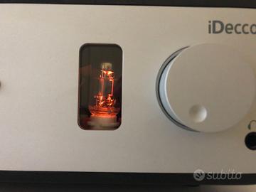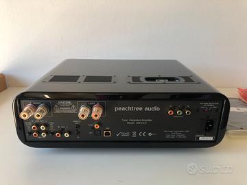 Vendo amplificatore ibrido valvole/transistors Peachtree Audio, modello iDecco, come nuovo con imballo originale. Vendo ad un terzo del listino del 2011. Amplificatore integrato ibrido valvole/transistor con ipod dock. Potenza 40W. Stadio pre a valvole in classe A a doppio pentodo 6N1P. Stadio di potenza a mosfet. Convertitore D/A 24bit/96Khz con DAC Sabre ESS9006. 3 Ingressi digitali: 1 USB (con trasformatore di disaccoppiamento), 1 ottico e 1 coassiale. 2 Ingressi analogici. Docking station superiore per ipod/iphone digitale. Uscita Pre out a volume variabile. Stadio a valvole per uscita cuffia. Uscita video component. Telecomando. Finitura laccata nera.