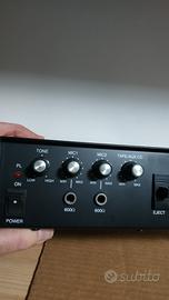 amplificatore vintage usato solo 2 volte..ka-918 ar-GBC.. apparecchio audio con lettore cassette integrato autoreverse.uscita di potenza 15 w..(50w di picco) ingressi per microfoni lettore cd.dispone inoltre di un uscita di collegamento per una tromba aggiuntiva , ideale per feste.. riunioni aziendali..per fare pubblicità in auto e/ furgone..nei mercatini.. oppure si può usare semplicemente a casa...dotata un uscita a 12 v.. inoltre adatto per diffusori 4-16 ohm..usato solo 2 volte...pari al nuovo..