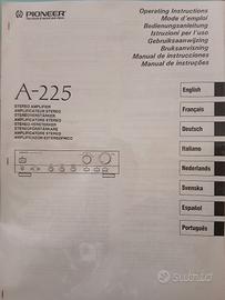 Vendo amplificatore vintage per impianto HI-FI Pioneer A225 in perfette condizioni, con il proprio manuale di istruzioni, possibilità di collegare 4 diffusori (2+2). Potenza nominale 100W. Potenza 35 W per canale. Ingressi RCA: Phono, Tuner, Cd, Tape 1/Dat Play, Tape 2 Play, Adaptor In. Uscite RCA: Tape 1/Dat Rec, Tape 2 Rec/Adaptor Out. Jack per cuffie da 3,5mm placcato oro. Tasti selezione "Speakers" A - B (On/Off). Tasti selezione "Loudness" e "Direct" (per l'ascolto diretto della sorgente audio). Tasto selezione "Tape 2/Adpt" (sorgente audio). Selettore sorgente audio: Phono, Tuner, Cd, Tape 1/Dat. Controlli per bassi (+-8db 100Hz), alti (+-8db 10KHz), balance. Dimensioni: L 42cm x H 10,3cm x P 28,2cm. Peso 5.6Kg. Mi scuso anticipatamente per la risoluzione delle foto che non rendono giustizia all'amplificatore che si presenta in condizioni eccellenti senza il minimo graffio.