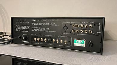Vendo amplificatore vintage Scott A406,ottime condizioni come si vede in foto,perfettamente funzionante e suono molto bello e caldo ,possibilità di collegare giradischi,radio e anche cellulari e altro con cavo aux o bluetooth con un modulo aggiuntivo,fa la sua figura anche come arredamento.