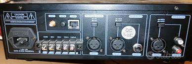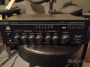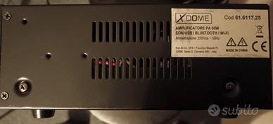 Amplificatore XDOME 61.6117.25 da tavolo con potenza di uscita di 60W. Usato in ottime condizioni, dotato di Wi-Fi e Bluetooth. Questi amplificatori sono provvisti di protezione contro cortocircuiti e sovratemperatura. Gestisce sia linee a bassa impedenza (4/8) che a tensione costante (70/100).