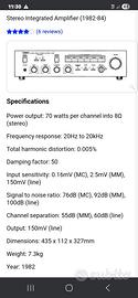 vendo amplificatore Yamaha A500 70 watt a canale anno 1982 vintage in buone condizioni vendo con la formula visto e piaciuto no perditempo grazie