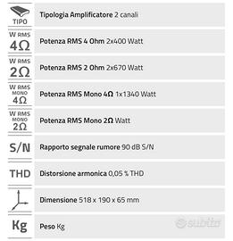 I dati dell’ampli li teovate nella foto.