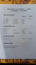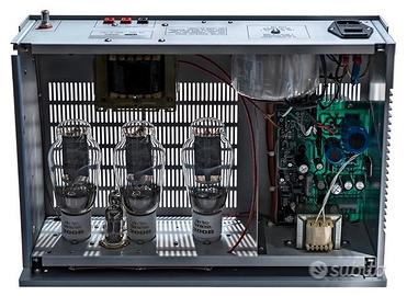 Coppia di amplificatori monofonici single-ended di potenza (18W) con triodi a riscaldamento diretto 300B nell’insolita configurazione di tre tubi in parallelo, unico esempio sul mercato high-end. Per l’alta impedenza d’ingresso può essere pilotato senza problemi da tutti i preamplificatori sia a transistor che a valvole; la ragguardevole potenza, le uscite a 4 e 8 Ohm con un fattore di smorzamento medio e l’assenza di controreazione totale, consente di pilotare con sicurezza qualsiasi diffusore di meda-bassa efficienza. Monta tubi NOS - 2 x 5814A NOS, 3x300B (Electro Harmonix Gold).Compatibile: mcintosh , accuphase, krell, audio research, conrad johnson , luxman. Disponibili per qualsiasi prova di ascolto in provincia di Milano, se interessati chiamare 345 8561219