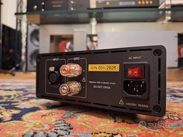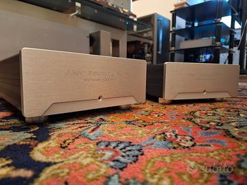 Coppia amplificatori finali MONOFONICI basati su moduli IcePower 2000AS1 - 1.4KW cad. (8Ohm) Chassis in alluminio, personalizzati, serigrafia laser. Spessore lamiere: 3mm. Frontale: 8mm. Dimensioni:200mm(W) x 90mm(H) x 376mm(D) [Dimensioni esterne esclusi piedi e connettori]. Pilotano QUALUNQUE diffusore con facilità, naturalezza, trasparenza e grande dinamica. Definitivi! Risultato sonico di livello altissimo. Possibilità di ascolto presso il mio domicilio (provincia di Parma). Consegno a mano o spedisco. Prodotti NUOVI.