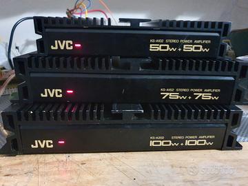 In vendita, per cambio progetto, vendo questo set di 3 amplificatori JVC Digifine modelli A202 (2×100w) + A152 (2×75w) + A102 (2×50w).