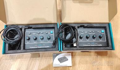 Vendo coppia di amplificatori (25€ l'uno) per cuffie professionali YGITI (modello KTY005eu), ideali per home studio, podcasting, sale prove o dirette streaming. Questi dispositivi permettono di sdoppiare un singolo segnale audio su 4 paia di cuffie diverse, mantenendo una qualità sonora cristallina e senza interferenze. Caratteristiche principali: - 4 Canali Indipendenti (Stereo TRS 4x 6,35 mm + 4x 3,5 mm = 8 persone totali). - Ogni uscita ha il proprio controllo del volume dedicato con 19dB di guadagno. - 3 Jack di Ingresso (AV/3,5 mm/6,35 mm) per permetterti di ascoltare direttamente dal mixer o dal pc. - Qualità Audio: Progettati per offrire un'alta fedeltà sonora anche ad alti volumi, connettori placcati in oro. - Funzione Mute: Ogni canale dispone di un tasto mute individuale, utilissimo durante le sessioni di registrazione. - Design Robusto: Chassis compatto e resistente in metallo, facile da inserire in qualsiasi setup. - Alimentazione: Standard EU (SKU KTY005eu). Stato del prodotto: Gli amplificatori sono completi di scatola originale e sono in condizioni eccellenti/pari al nuovo. Ideali per chi ha bisogno di gestire più ascolti contemporaneamente senza perdita di segnale. Spedizione o ritiro a mano su Torino.