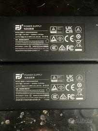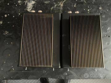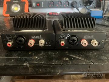 Vendesi n.2 amplificatori della FOSI AUDIO modello V3, con rispettivi alimentatori da 48 volt 5A Channel : 1.0 Amplifier Chip : Texas Instruments TPA3255 Input : RCA, XLR, ¼" TRS Output : Speaker Output (supports banana plug or bare wire connection) SINAD : XLR: 101dB ; RCA: 93dB SNR : ≥123dB Dynamic Range : ≥123dB THD : <0.006% Gain : XLR/¼” TRS: 20dB ; RCA: 19dB, 25dB; Terminal Impedance : 2-8Ω Rated Power Output : 48V/5A--240W@4Ω ; 32V/5A --100W@4Ω Frequency Response : 10Hz-30kHz(±0.06dB) Input Voltage Range : DC 32-48V Standard PSU : 48V/5A